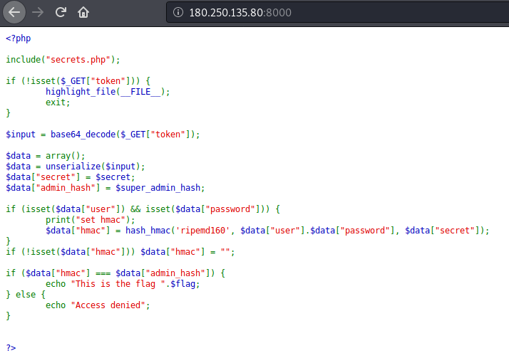 Setelah dianalisis, intinya untuk mendapatkan flag kita harus memberikan token base64 yang berisi array yang sudah di serialize dan berisi username & password,