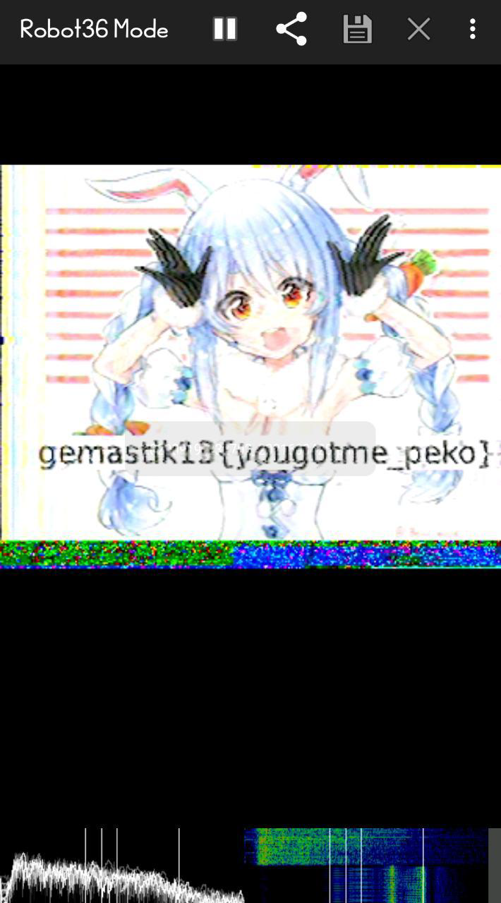 kami berasumsi ini adalah SSTV, klik tanda silang yang atas dan play yang bawah dan record output menggunakan robot36 :