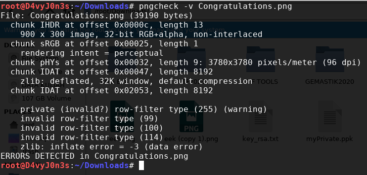 Diberikan sebuah file png yang corrupt, kami coba analisis dengan pngcheck dan terdapat error :