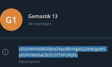 Decode link telegram (dapat link telegram dari hehe.txt isinya dump dari bash history, ada base64 lalu di decode dapat link telegram). Tadinya disini tidak ada apa-apa namun setelah beberapa jam base64 dari potongan flag ke 4 ditaruh pada deskripsi grup (mungkin adminnya lupa hehe).