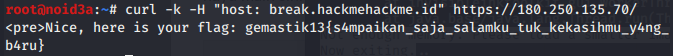 curl -k -H "host: break.hackmehackme.id" https://180.250.135.70/